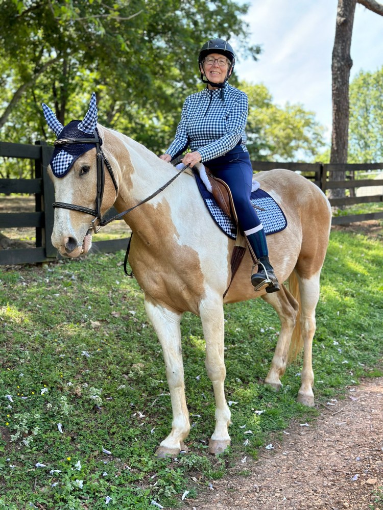Chriss and her horse Bacchus love showing in virtual horse shows. The pair received 3rd place overall for the 2023 year in the National Open Horse Show Association, High Point champions in their division in the Spring 2022, Fall 2022 and Holiday 2022 Showmaster Horse Show series. Chriss and Bacchus also earned Champions of the Adult WT Division of the 2024 Elysian Fields Horse Show, and Grand Champions in the Open English, Senior English, and Halter divisions in Hartwig Farms Shows.