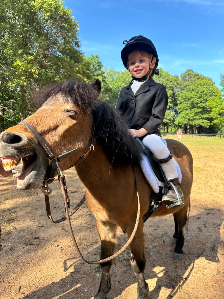 Chriss grew up riding at Fox Run Farm. During middle and high school, she was a member of the Lakeshire Pony Club and rode in fox hunts with the Shakerag Hunt Club as a guest hill topper. Chriss and Hooves and Heels co-creator and aunt, Geri, won first place in their team’s division in Shakerag Hunt Club’s annual Hunter Pace Show, a win they are both proud of to this day! While Chriss lived in New Orleans, she had the honor of riding the gentle giants of the Orleans Parish Sheriff Department’s mounted patrol unit, schooling the horses over jumping courses every weekend during her lessons at Equest Farm at New Orleans City Park. She is passing her love of horses on to her daughter Kennedy, who loves riding her mini horse Hamilton Beignet (Hami for short) and showing him in lead line classes, including Fox Run Farm’s Little Heels Horse Show!