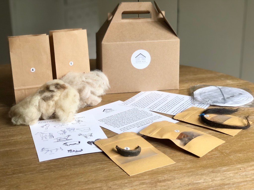 We believe every child should experience life on the farm, no matter where they live. BARN BOX brings the farm to you! BARN BOX is a fun and educational, hands-on experience by Fox Run Farm. Each box is packed with items from our farm, including wool, feed, and even a piece of horse hoof to name a few! Buy here